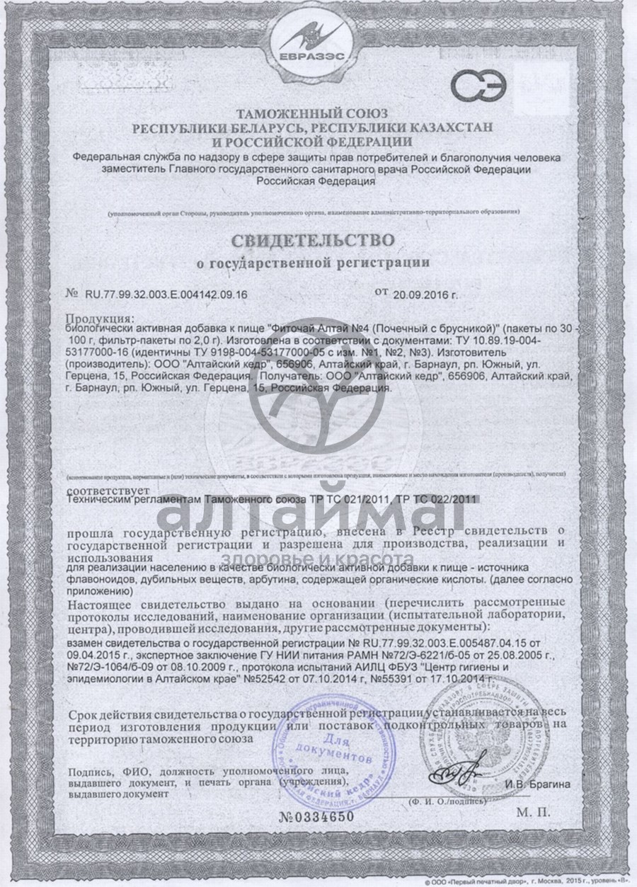 Фиточай «Алтай» №4 «Почечный. С брусникой»